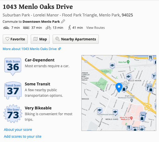 1043 Menlo Oaks Drive has a Walk Score of 36 out of 100. This location is a Car-Dependent neighborhood so most errands require a car.