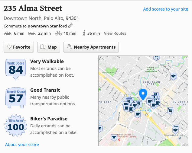 235 Alma Street has a Walk Score of 84 out of 100. This location is Very Walkable so most errands can be accomplished on foot.